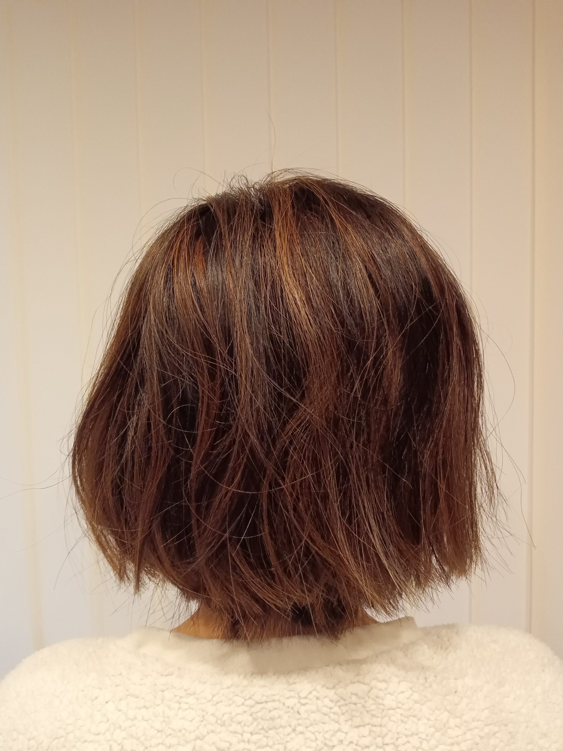 うねりとパサつきがひどい。朝からアイロンが大変よ、これ。ボリュームでまくってる・・・。